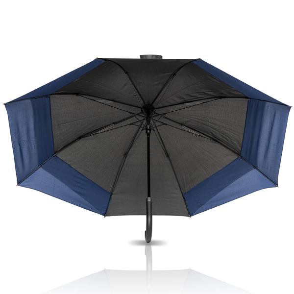 Parasol pongee 190T, rozsuwany po bokach. W wyjściowym otwarciu ma średnicę 117 cm, a po rozsunięciu przechodzi do 150 cm wraz ze wzrostem boków. Idealny do użytku z 2 osobami lub do ochrony dodatkowej przestrzeni wokół nas, takiej jak plecak z tyłu. Dzięki żebrom z włókna szklanego ta czapa ma elegancki wygląd i kompozycję. Uchwyt „J” ułatwiający transport.