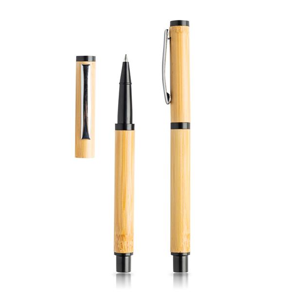 Bambusowy zestaw składa się z długopisu, pióra kulkowego oraz etui prezentowego. Korpusy obu wykonane są z bambusa oraz posiadają srebrny klips. Piszą na niebiesko. Długopis z systemem push, natomiast pióro z systemem nasadek. Zawiera kartonowe etui w formacie wysuwanego rękawa.