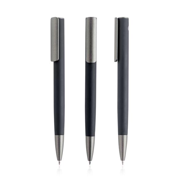 Długopis kulkowy z recyklingowanego aluminium z gumowanym wykończeniem. Wykonany z aluminium z recyklingu odpadów, wykorzystując procesy topienia i pozyskiwania. Kupując ten długopis, pomagasz zmniejszyć emisję dwutlenku węgla i ograniczyć odpady pochodzące z niewykorzystania. Ten długopis ze sporograficznym niebieskim wkładem ma także dodatek gumy oraz zaokrąglony klips, co nadaje mu nowoczesnego charakteru.