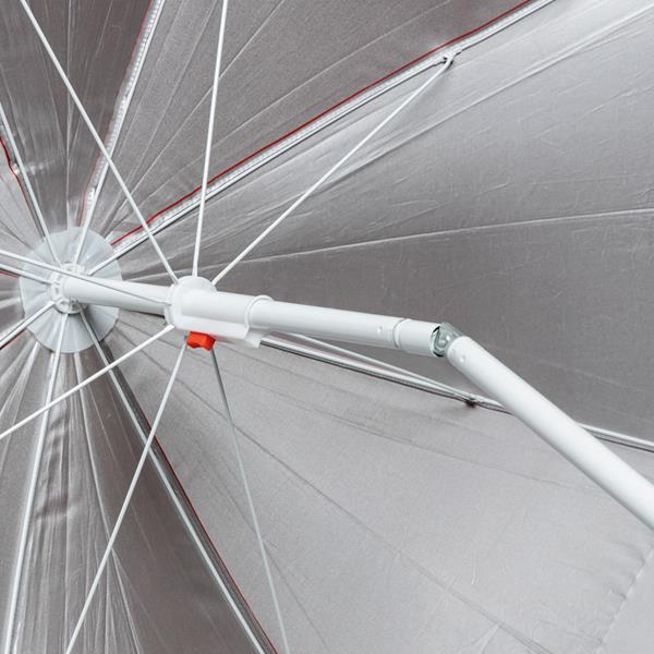 Ten piękny parasol zapewnia ochronę przed szkodliwymi promieniami UV. Dzięki łamanemu korpusowi można ustawić go pod odpowiednim kątem.