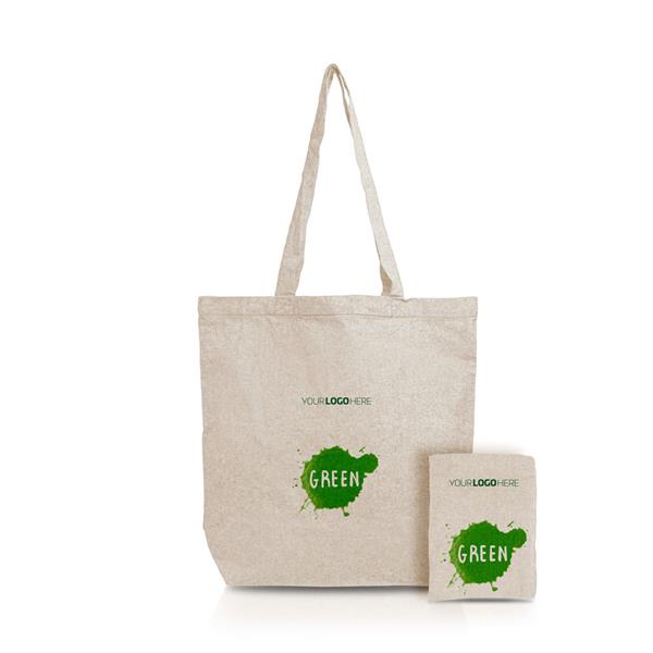 Torba wykonana z bawełny, która pochodzi z recyklingu. Dzięki możliwości złożenia zajmuje bardzo niewiele miejsca. Gramatura 190g/m2 zapewnie odpowiednią wytrzymałość.