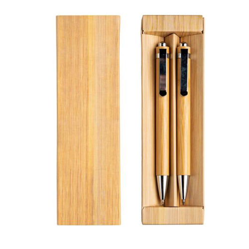 Bambusowy zestaw piśmienny z metalowymi elementami w etui