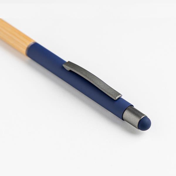 Aluminiowy długopis pochodzący z recyklingu. Posiada funkcje touch oraz oraz elegancki bambusowy uchwyt.