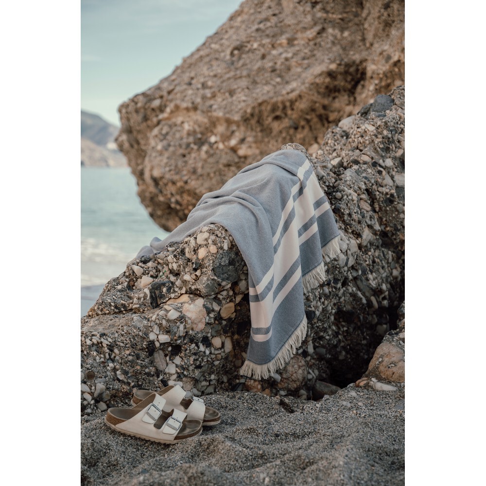Ręcznik VINGA Tolo wykonany z 75% bawełny i 25% poliestru, dwie różne tekstury: frotte i gładka, szybkoschnące