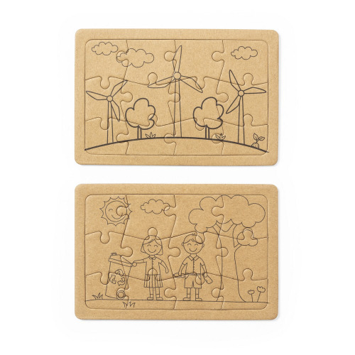 Zestaw puzzli z kartonu z recyklingu, 2 wzory w komplecie (12 elementów każdy wzór)