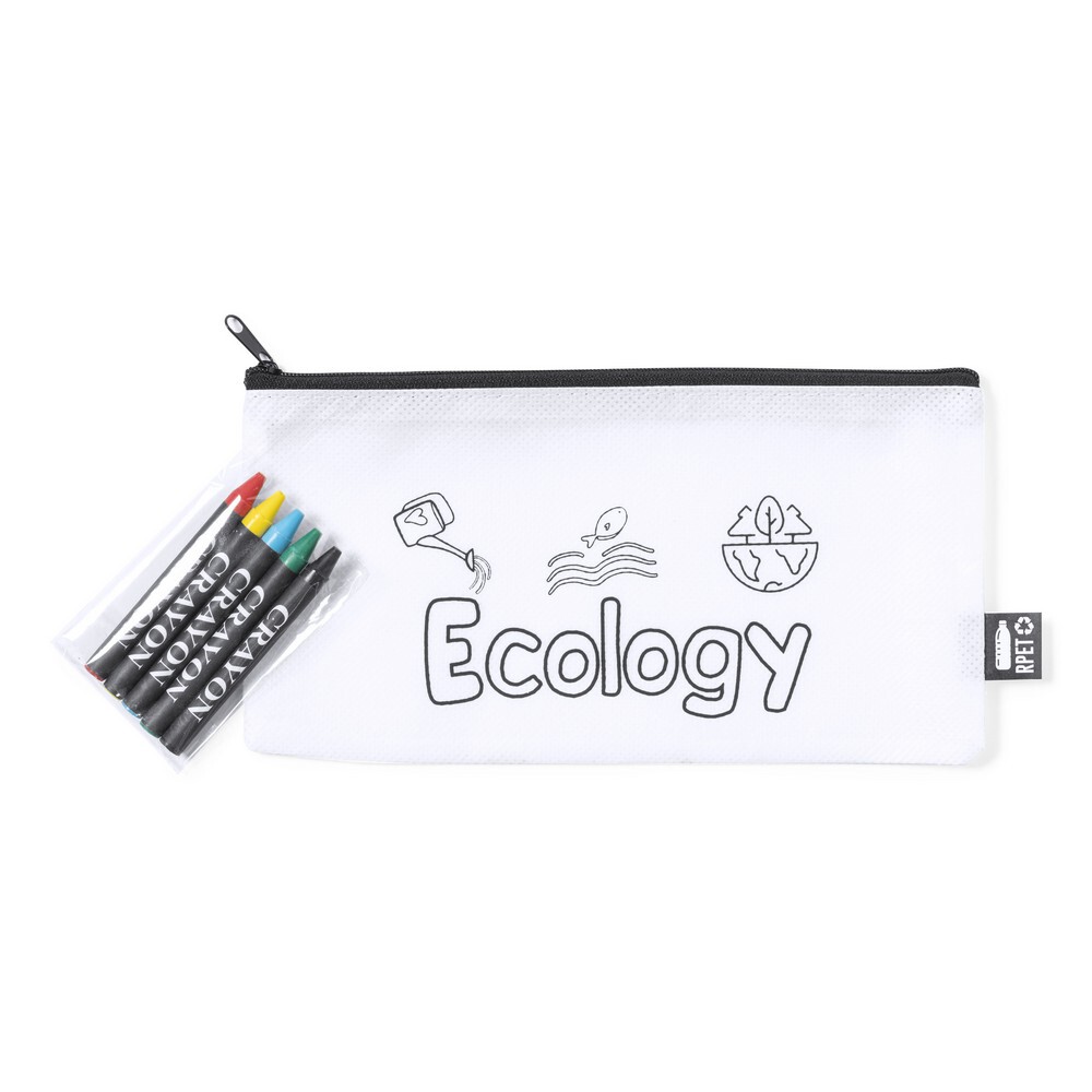 Piórnik do kolorowania z główną przegrodą na zamek błyskawiczny, wykonany z non-woven RPET, 5 kredek świecowych w komplecie