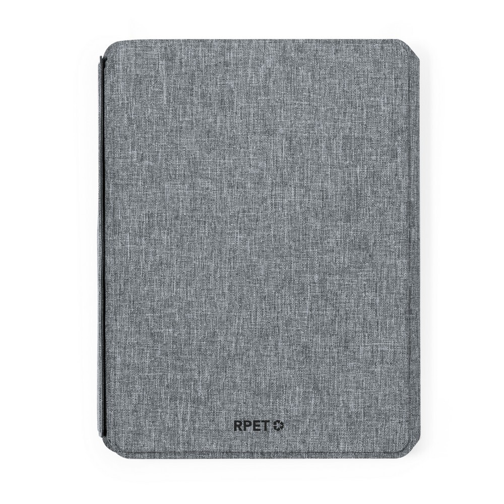 Wielofunkcyjny notatnik RPET A5, magnetyczna ładowarka bezprzewodowa 10W, power bank 5000 mAh / Szary