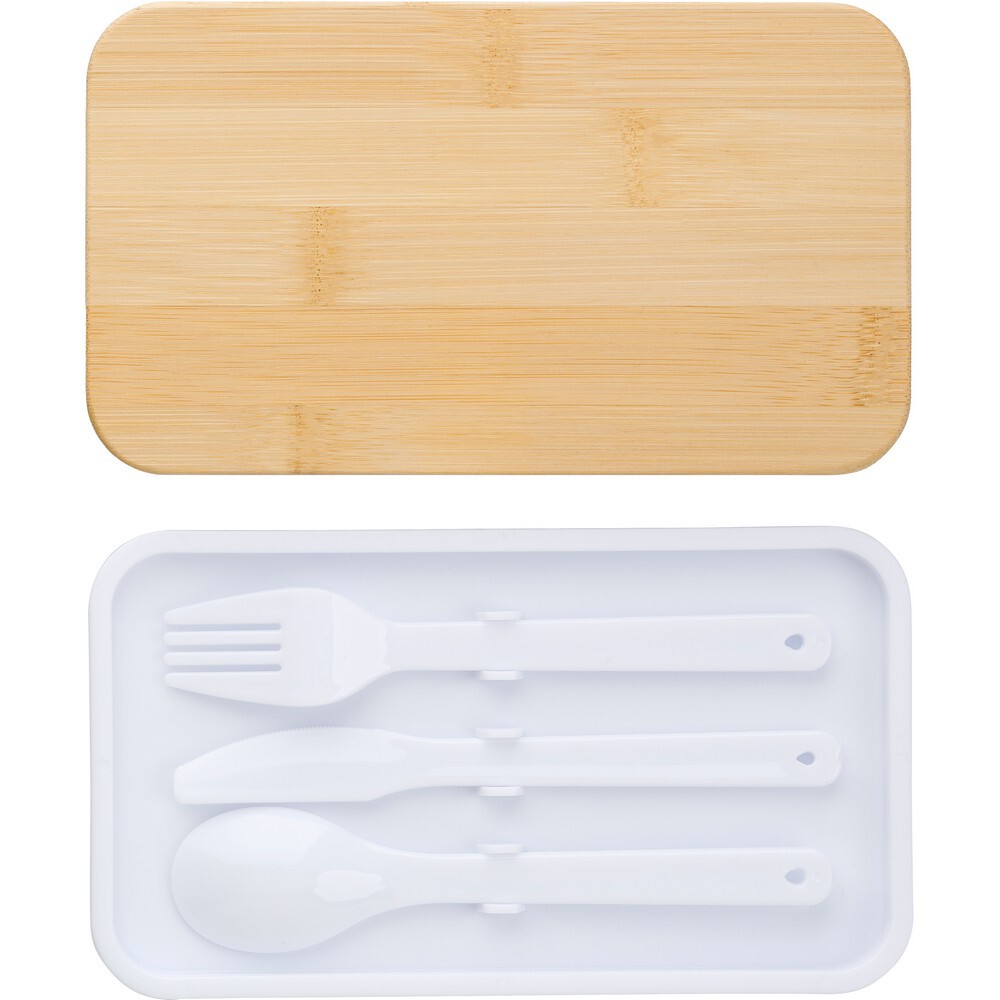 Pudełka śniadaniowe 2 w 1, 2x400 ml, bambusowe wieczko, sztućce / Biały