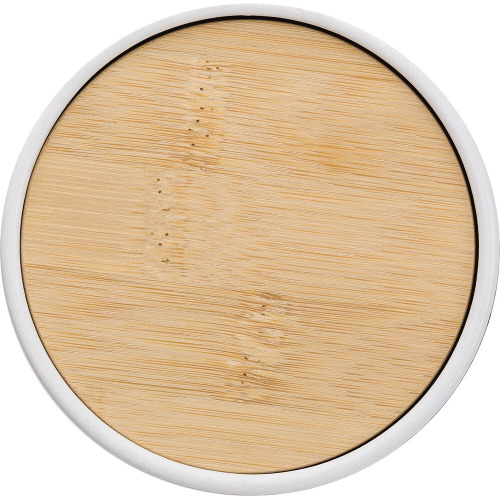 Świeczka zapachowa w szklanym słoiczku (02-wanilia, 05-cynamon, 03-olejek sandałowy, 06-jaśmin) z bambusowym wieczkiem, zawiera głównie wosk roślinny (wosk carbauba), czas palenia około 20h