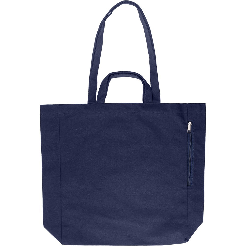 Torba na zakupy z długimi i krótkimi uchwytami, wykonana z bawełny z recyklingu, boczna kieszeń na zamek błyskawiczny