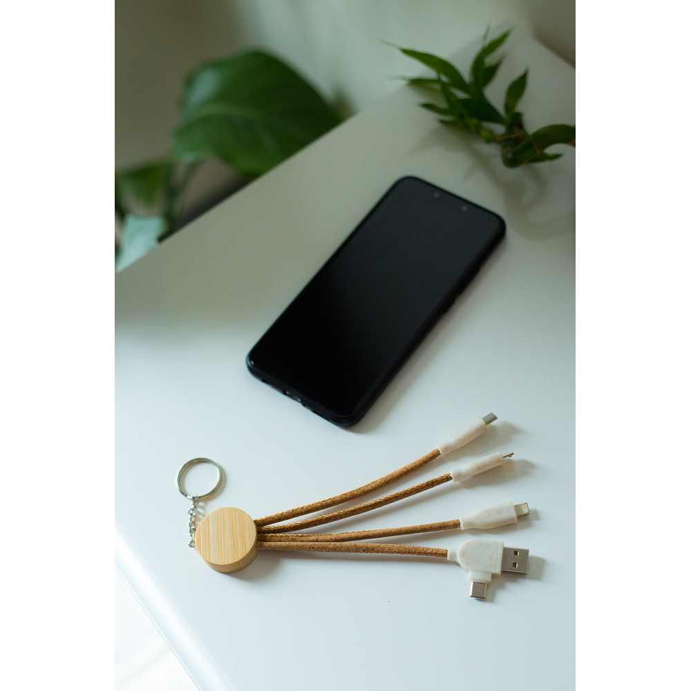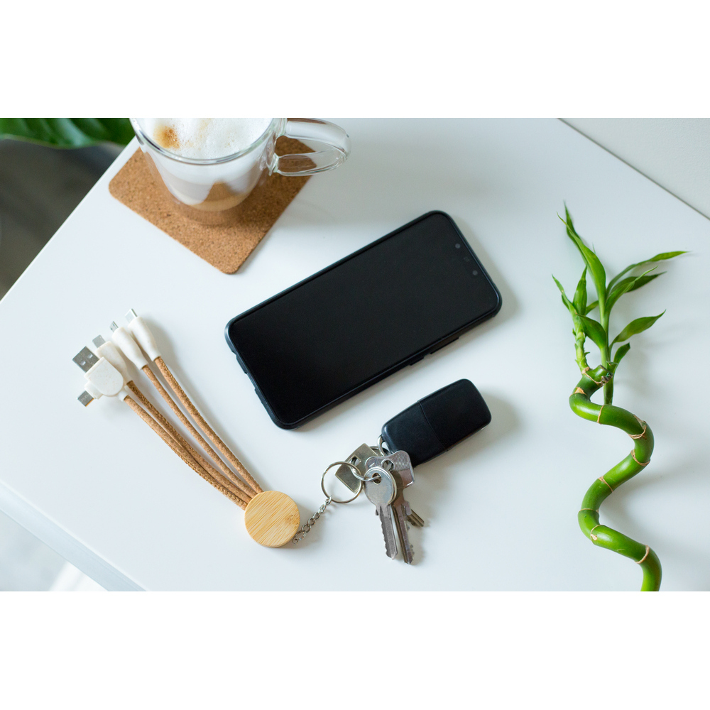 Korkowy kabel do ładowania B'RIGHT, bambusowy element, brelok do kluczy | Antez / Neutralny