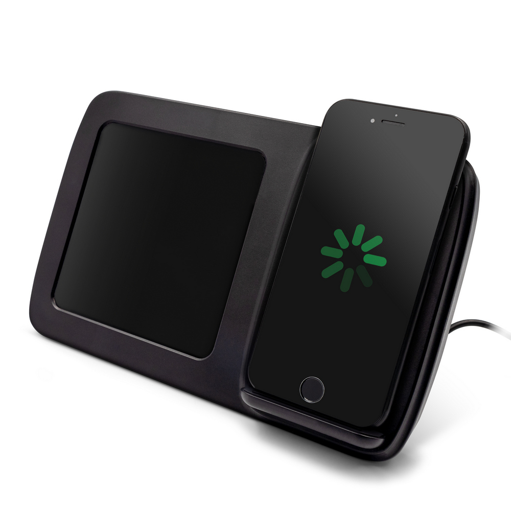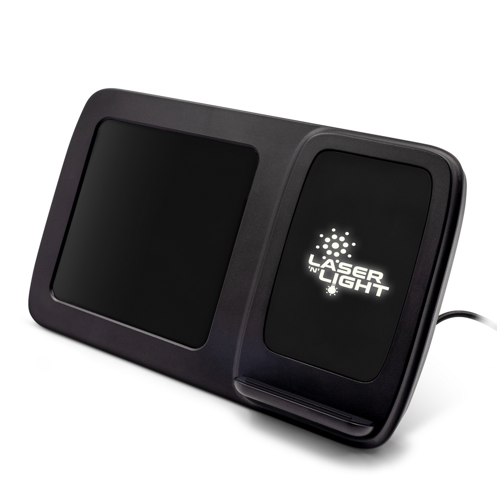Ładowarka bezprzewodowa 5W-15W Exclusive Collection, wbudowany zegar cyfrowy, funkcje: alarm, temperatura, wilgotność powietrza, zegar i data, działa z telefonami posiadającymi możliwość ładowania indukcyjnego, grawer ukazuje podświetlaną powierzchnię, kabel USB typu C w komplecie