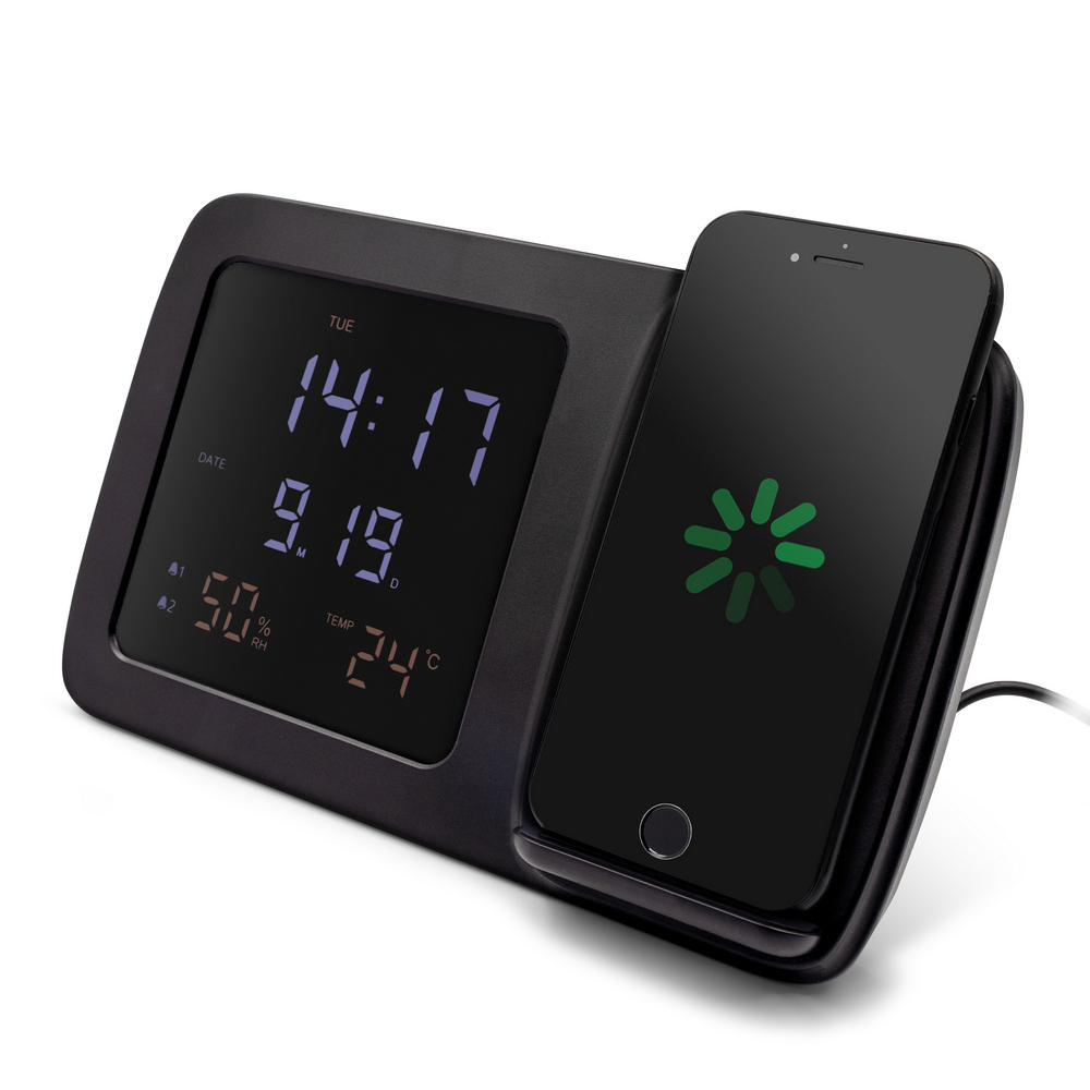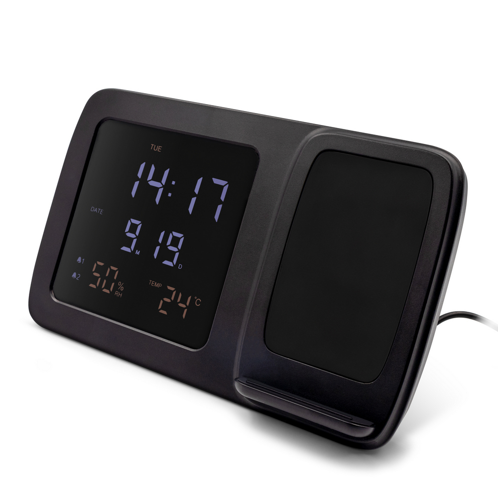 Ładowarka bezprzewodowa 5W-15W Exclusive Collection, wielofunkcyjny zegar cyfrowy | Isha / Czarny