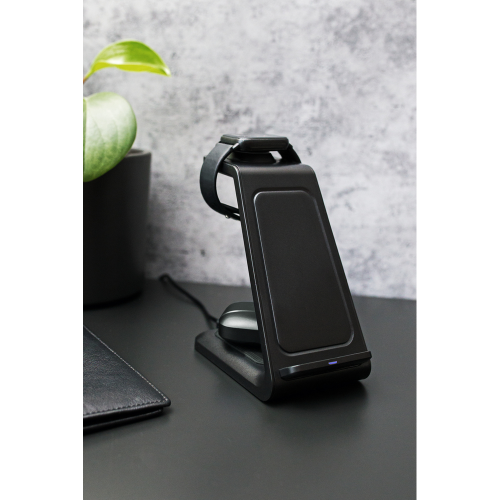 Ładowarka bezprzewodowa 15W, 3 w 1, stojak na telefon | Todd / Czarny