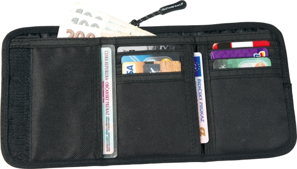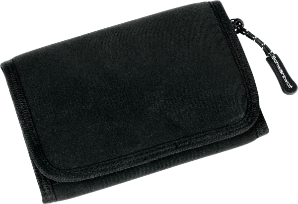 Praktyczny lekki, cienki i miękki potrfel z neoprenu. Do przechowywania banknotów, kart bankowych i monet. Zapinana kieszeń na monety posiada gumowany zamek błyskawiczny Schwarzwolf. Materiał: neopren, 600D poliester.