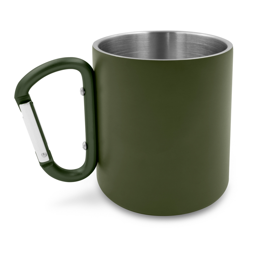 Kubek 280 ml ze stali nierdzewnej z recyklingu, z karabińczykiem | Pari / Zielony