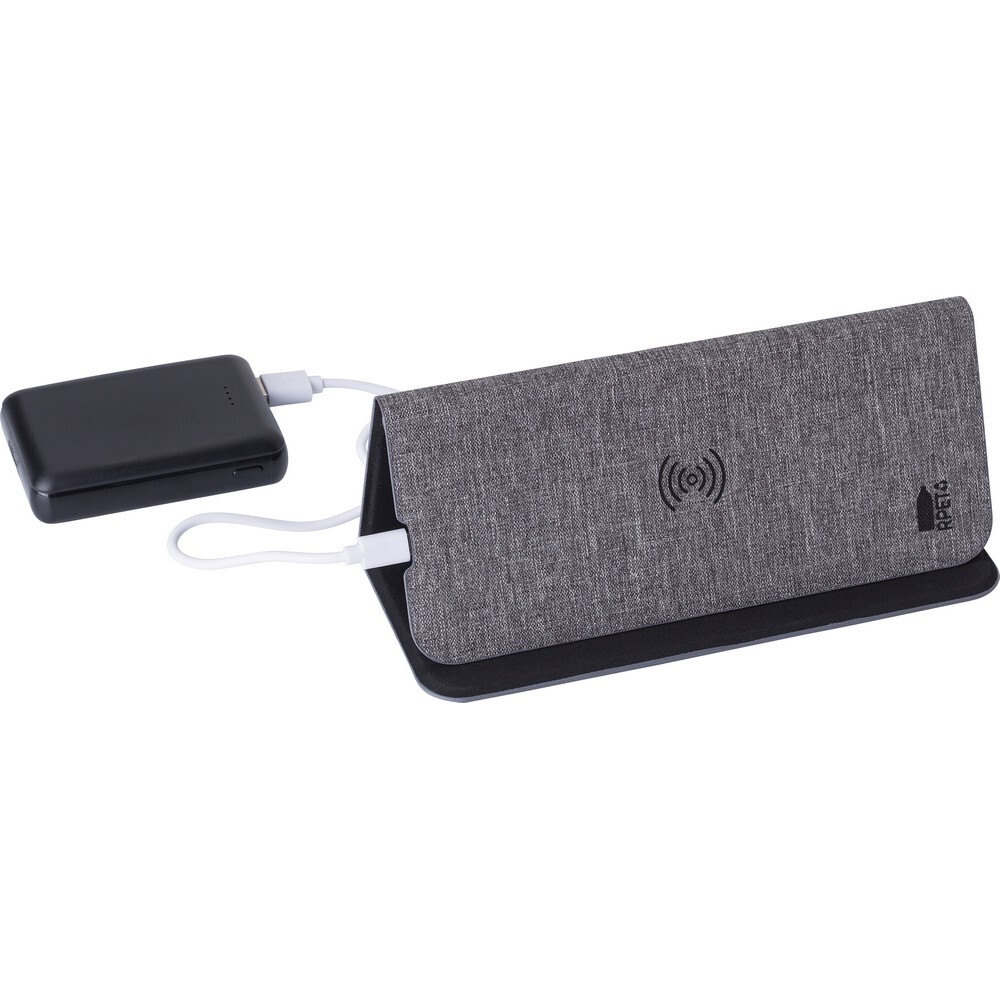 Podkładka pod mysz RPET, ładowarka bezprzewodowa 10W / Szary