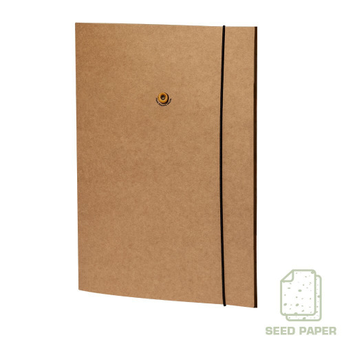 Teczka na dokumenty ok. A4 wykonana z kartonu z recyklingu z nasionami dzikich kwiatów, zamykana na gumkę
