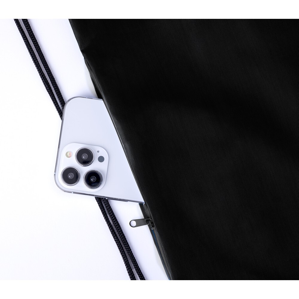 Worek ze sznurkiem, wykonany z RPET, kieszeń na zamek błyskawiczny