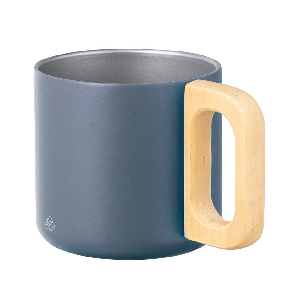 Kubek 400 ml wykonany ze stali nierdzewnej z recyklingu, podwójne ścianki, drewniany