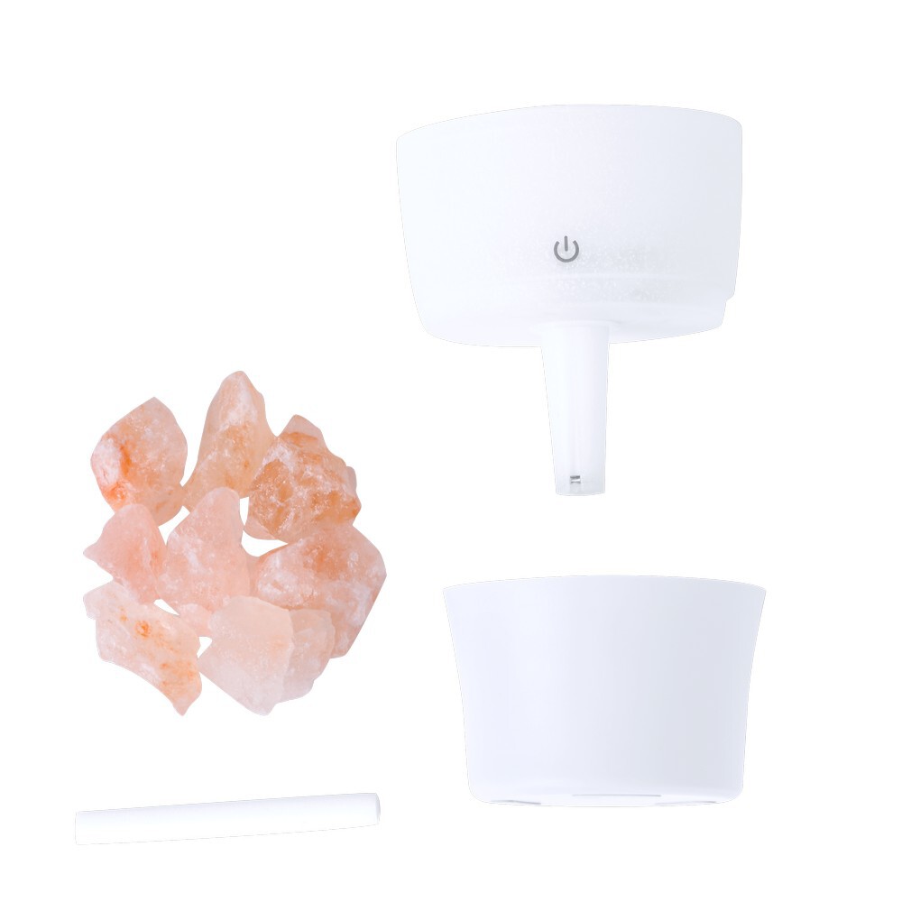 Nawilżacz powietrza, zmieniające kolor podświetlenie, kamienie z soli himalajskiej / Biały