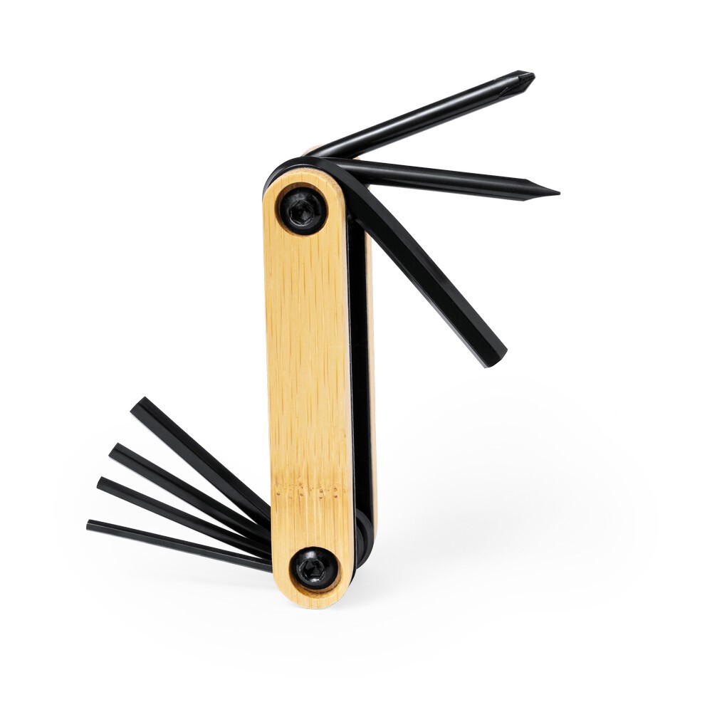 Narzędzie wielofunkcyjne, 7 funkcji, klucze imbusowe, śrubokręty, bambusowy uchwyt
