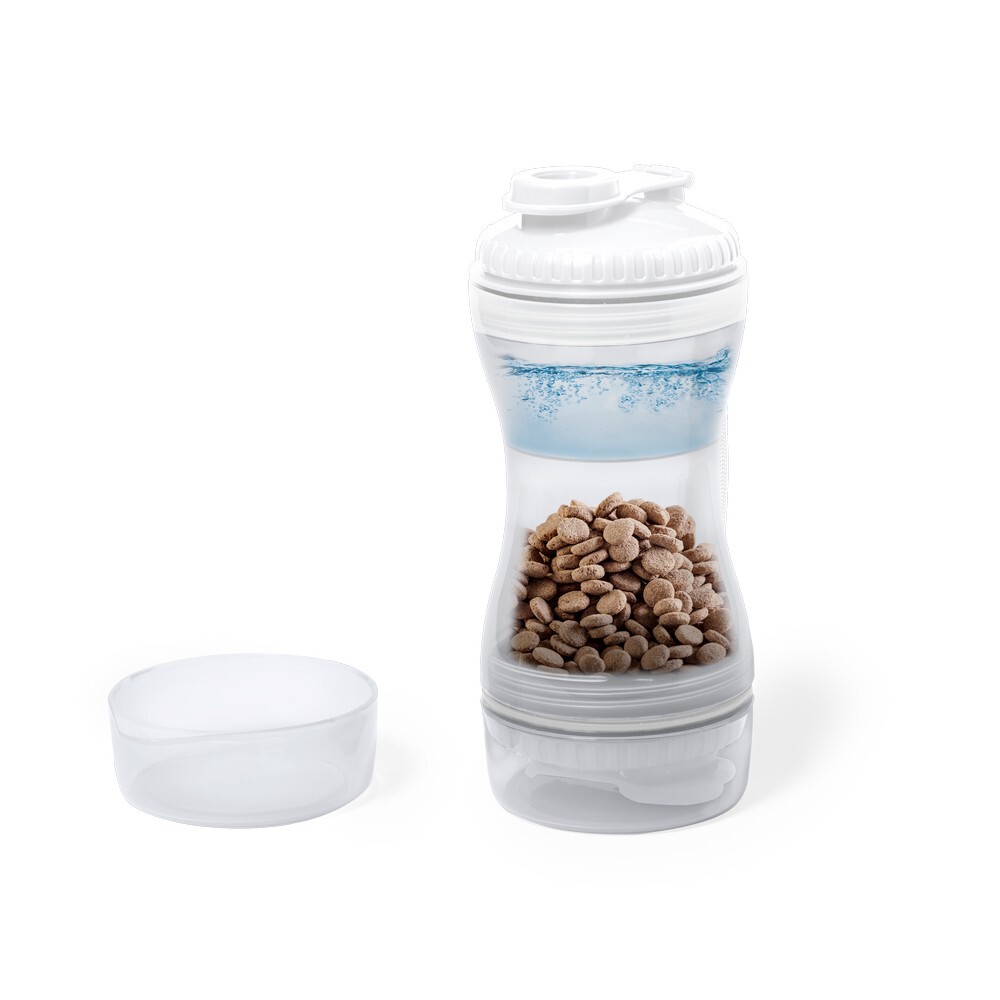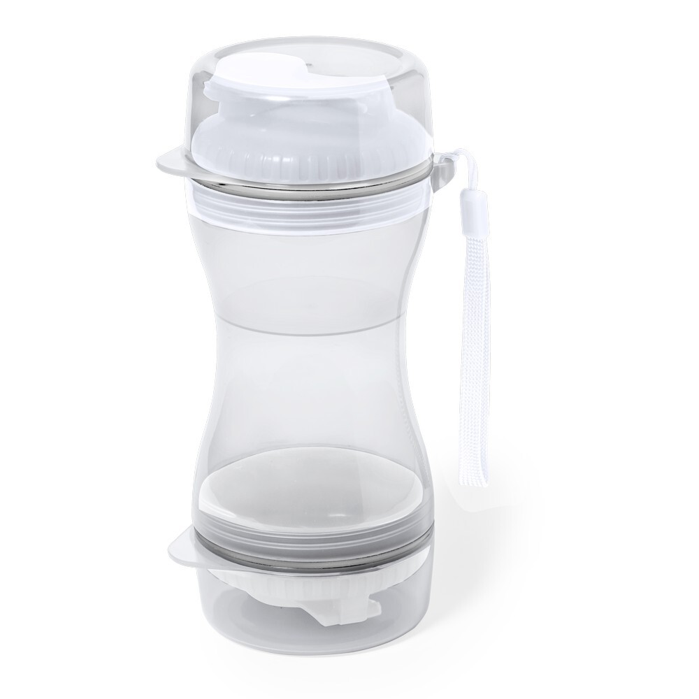Zestaw podróżny dla psa, przegroda 280 ml na wodę z dozownikiem, przegroda 330 ml na jedzenie dla psa, pasek na rękę, 2 wieczka mogące służyć jako miski dla psa w komplecie