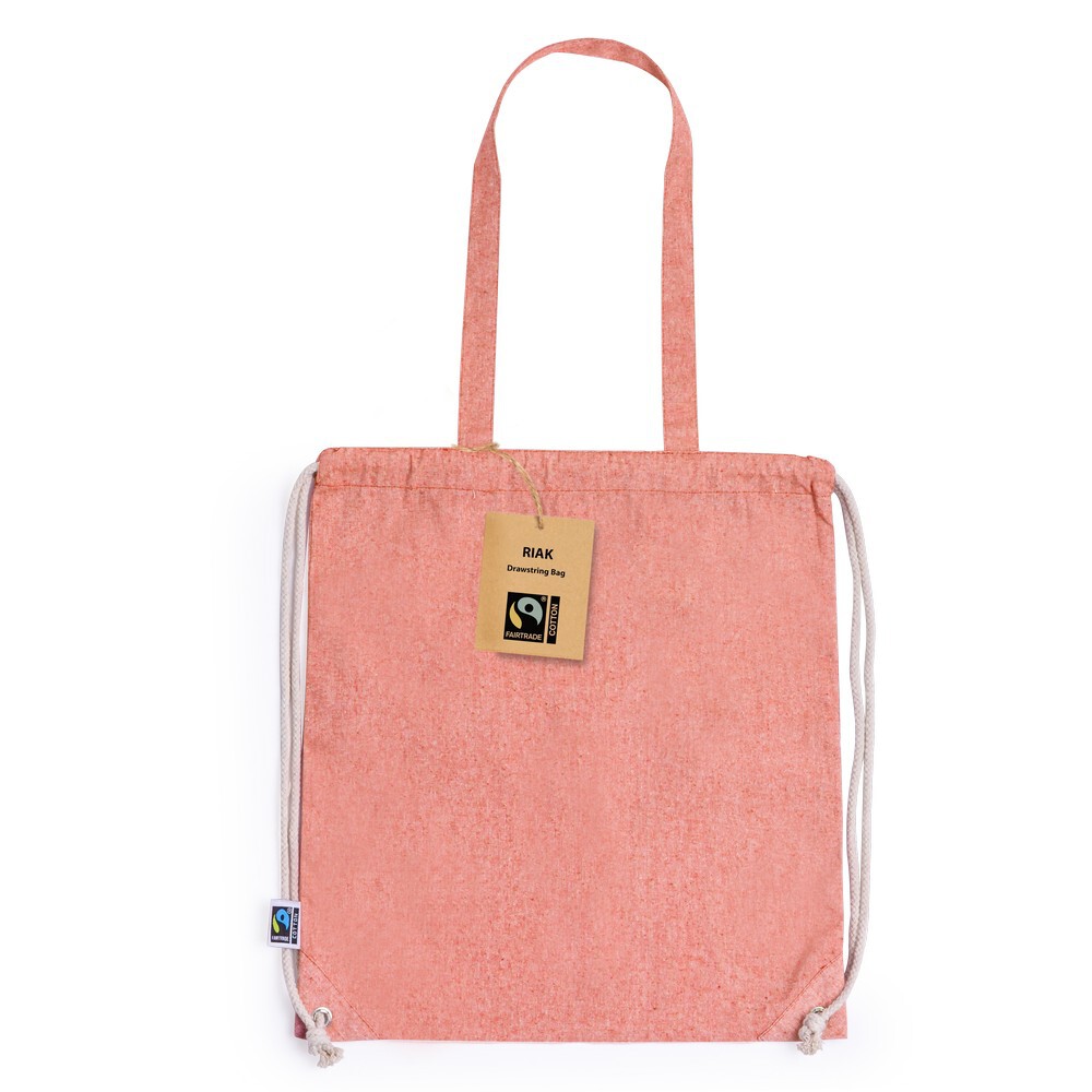 Worek ze sznurkiem i torba na zakupy z bawełny z recyklingu, 2 w 1 / Czerwony