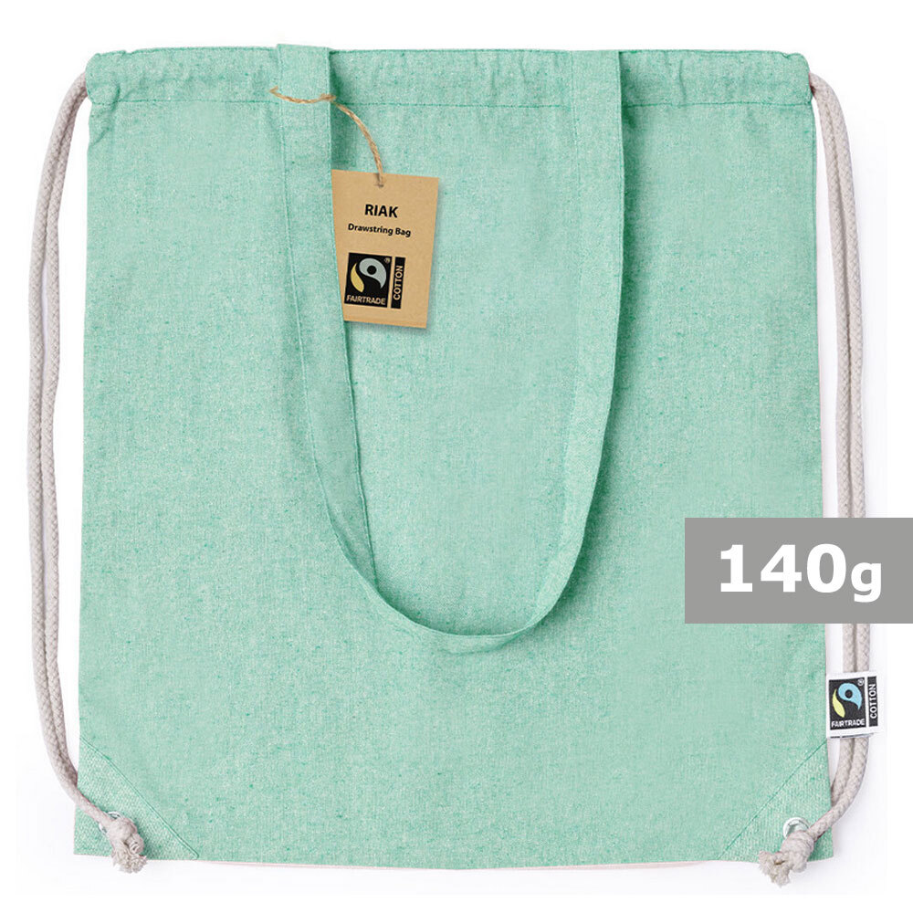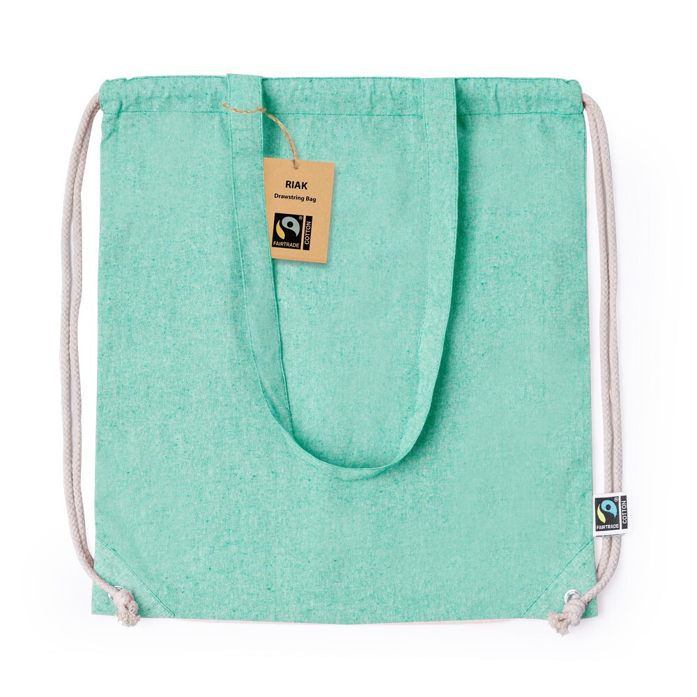 Worek ze sznurkiem i torba na zakupy z bawełny z recyklingu, 2 w 1 / Zielony