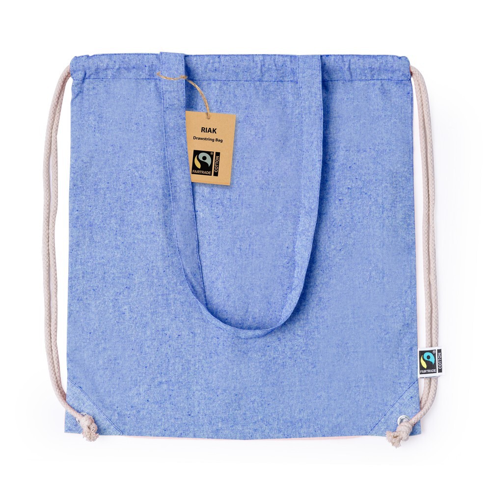 Worek ze sznurkiem i torba na zakupy z bawełny z recyklingu, 2 w 1 / Niebieski