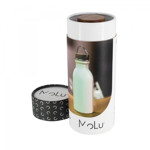 Butelka wykonana ze stali nierdzewnej pochodzącej z recyklingu. Posiada zakrętkę z drewna akacjowego o głębokim, ciepłym kolorze oraz wygodny uchwyt do przenoszenia, dzięki czemu model ten nie tylko wygląda estetycznie, ale również jest użyteczny i komfortowy w noszeniu. Butelka jest wytrzymała i łatwa w czyszczeniu, odporna na korozję. Nada się idealnie do biura, albo jako gadżet na spacery, czy inne aktywności. Ze względu na wysoką jakość produktu, to idealna opcja dla osób poszukujących sprawdzonych i solidnych gadżetów reklamowych. Cechy ogólne:Dwa lata gwarancji.Pojemność 500 ml.Materiał: stal nierdzewna 304, drewno akacjowe, PP.Produkt recyklingowany, eco-friendly.Produkt bezpieczny do użytku z żywnością.Produkt zapakowany w sztywne i eleganckie pudełko prezentowe.
