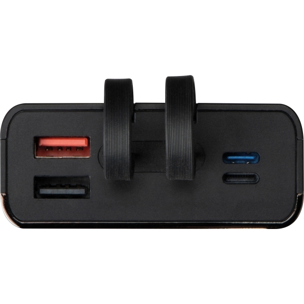 Power bank o dużej pojemności 20 000 mAh z funkcją szybkiego ładowania, idealny do długotrwałego użytku. Wyposażony w dwa porty USB oraz dwa porty typu C, co pozwala na jednoczesne ładowanie kilku urządzeń. Posiada wbudowany kabel typu C oraz lightning, co sprawia, że nie potrzebujesz dodatkowych kabli. Cyfrowy wyświetlacz informuje o poziomie naładowania baterii, co zwiększa wygodę użytkowania. To niezawodny i wszechstronny gadżet, idealny na każdą podróż i codzienne sytuacje.