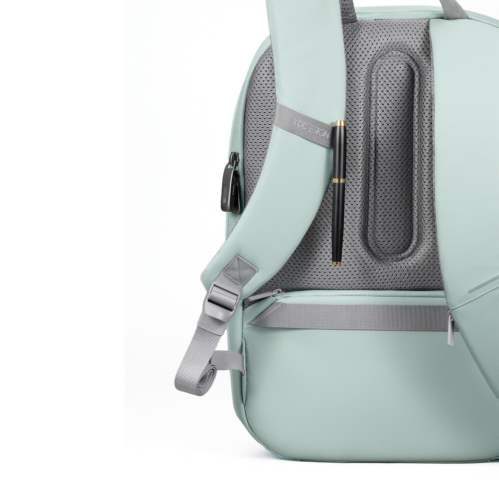 Plecak chroniący przed kieszonkowcami Bobby Edge, wodoodporny materiał, wykonany z RPET, ukryte zamki i kieszenie, wewnątrz przegroda na laptop i tablet, kieszenie z ochroną RFID, odblaskowe paski zwiększające widoczność, pasek do zamocowania na walizce, wzór zastrzeżony®, całkowita zawartość materiałów z recyklingu obliczona na podstawie wagi całkowitej produktu: 14%, ślad węglowy produktu: 6,15 kg CO2