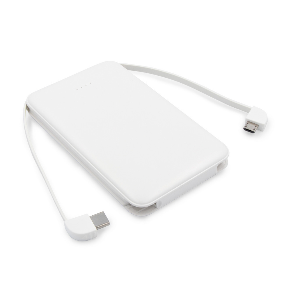 Power bank 5000 mAh ze zintegrowanymi kablami, adapter w komplecie | Presley / Biały
