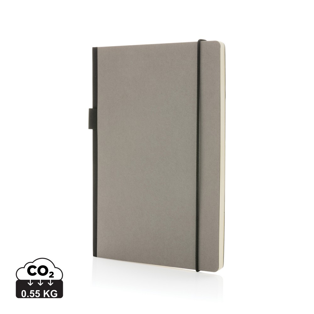 Notatnik A5, (80 kremowych kartek w linie), twarda okładka, okładka oraz strony wewnętrzne posiadają certyfikat FSC® (Forest Stewardship Council), tasiemka zakładkowa, elastyczna pętla na przybory do pisania, z tyłu kieszonka na luźne notatki, ślad węglowy produktu: 0,55 kg CO2