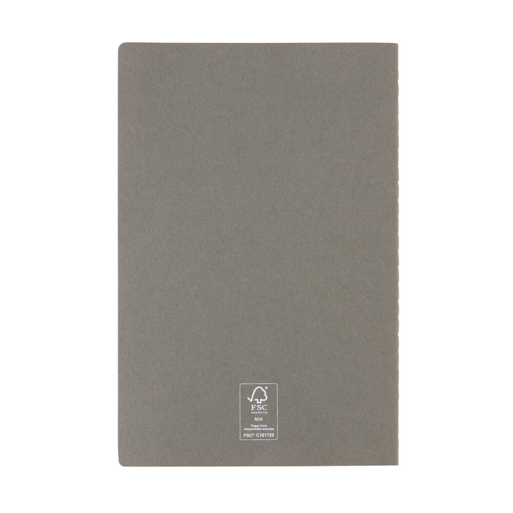 Notatnik A5, (46 kremowych kartek w linie), miękka okładka, okładka oraz strony wewnętrzne posiadają certyfikat FSC® (Forest Stewardship Council), ślad węglowy produktu: 0,25 kg CO2