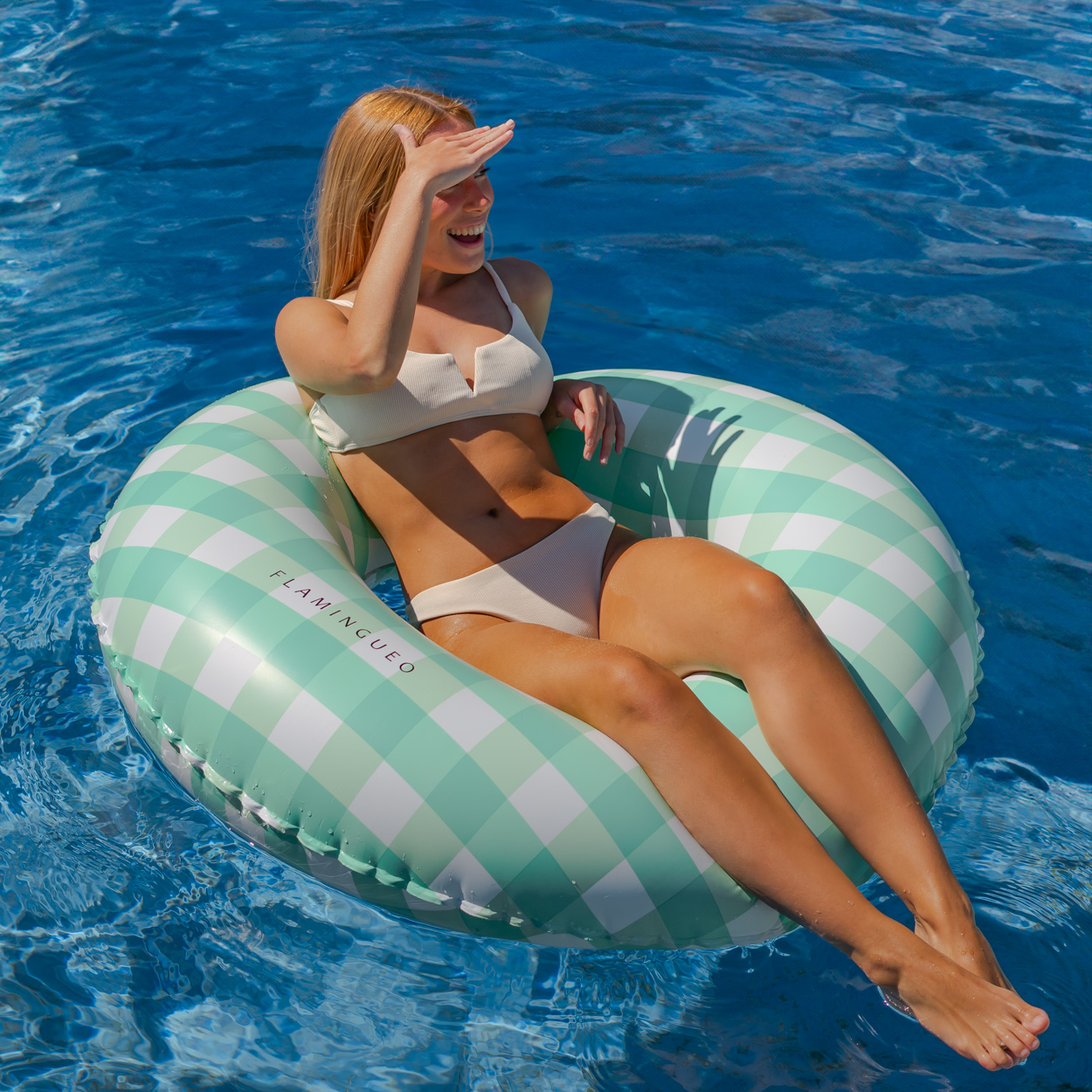 Przygotuj się na lato z naszym nowym dmuchanym materacem w kształcie donuta. Oryginalny wzór w kratkę Vichy przyciągnie uwagę. Idealny dodatek do wspólnego spędzania czasu z przyjaciółmi na plaży lub w basenie. Produkt posiada certyfikat EN71. Wytrzymuje maksymalne obciążenie 100 kg.