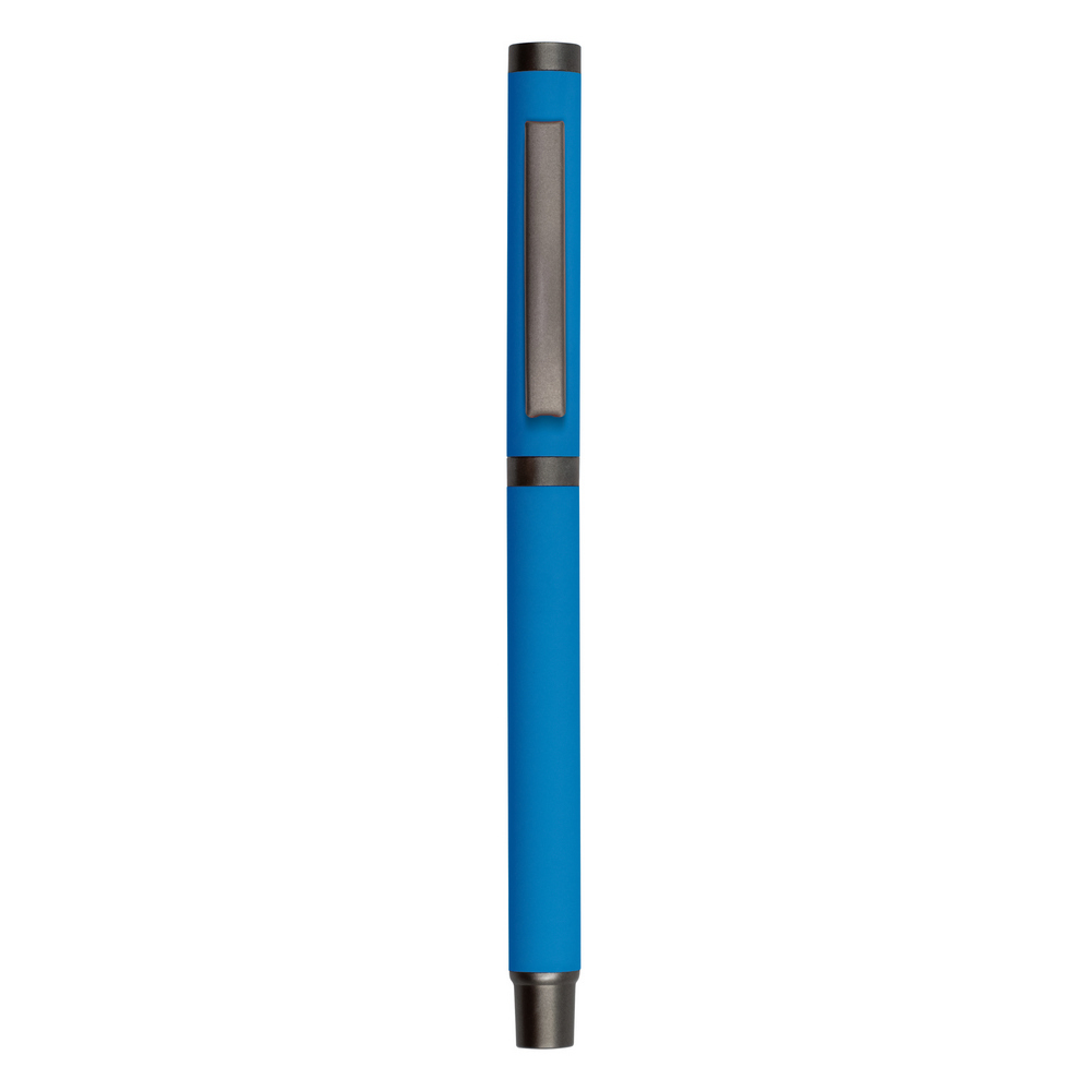 Długopis z gumowanym wykończeniem i dopasowaną kolorystycznie zatyczką z szarym klipem, żelowy wkład 0.7 mm, długość pisania do 500 m