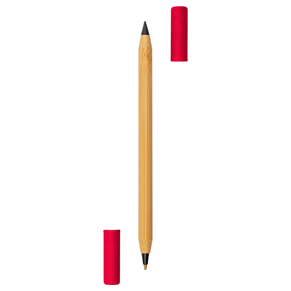 Bambusowy długopis 2 w 1, "wieczny" ołówek | Mikayla / Czerwony