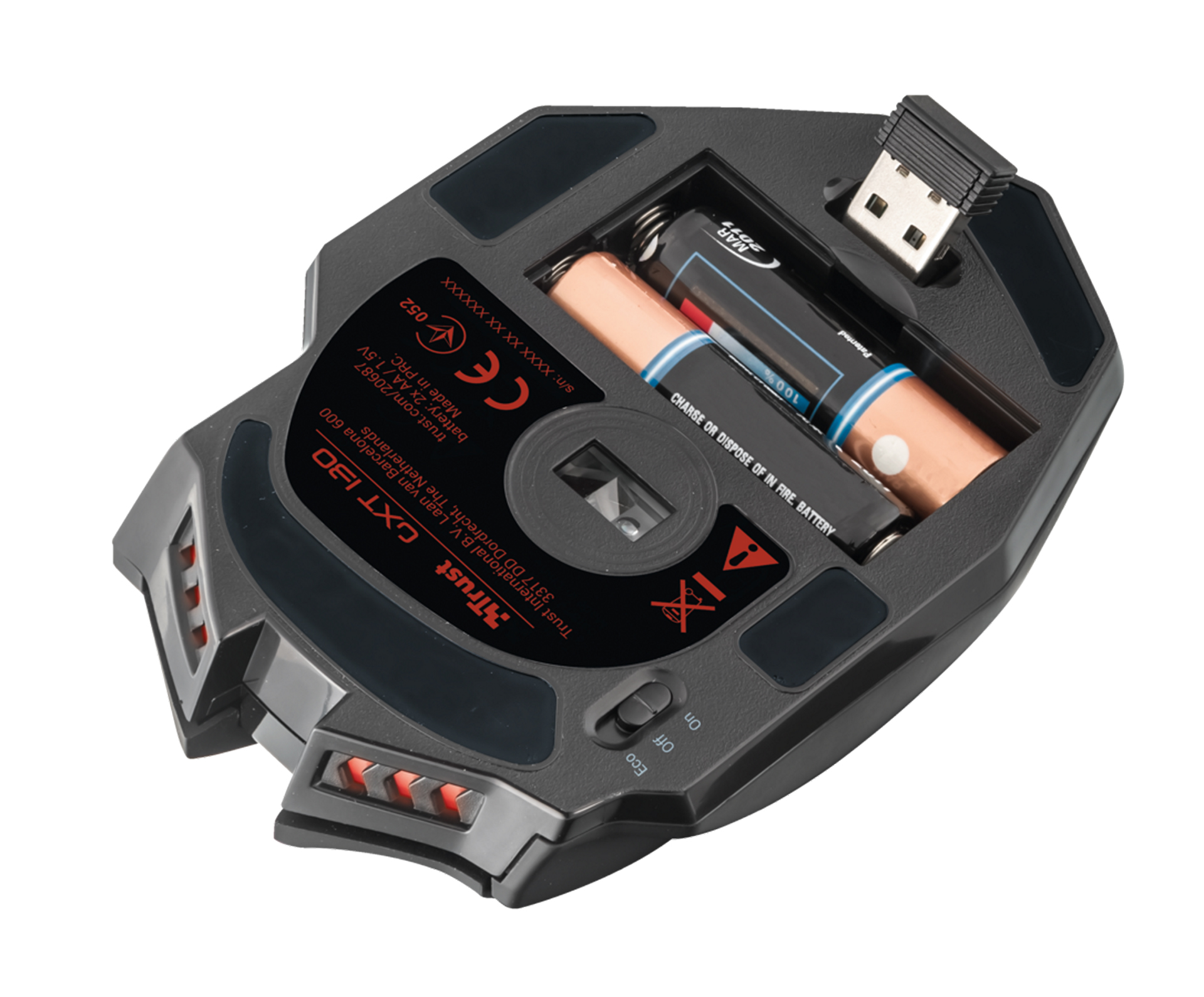 Bezprzewodowa mysz dla graczy GXT 130 firmy Trust została wyposażona w 9 responsywnych przycisków, podświetlenie LED i przyciski wyboru prędkości.