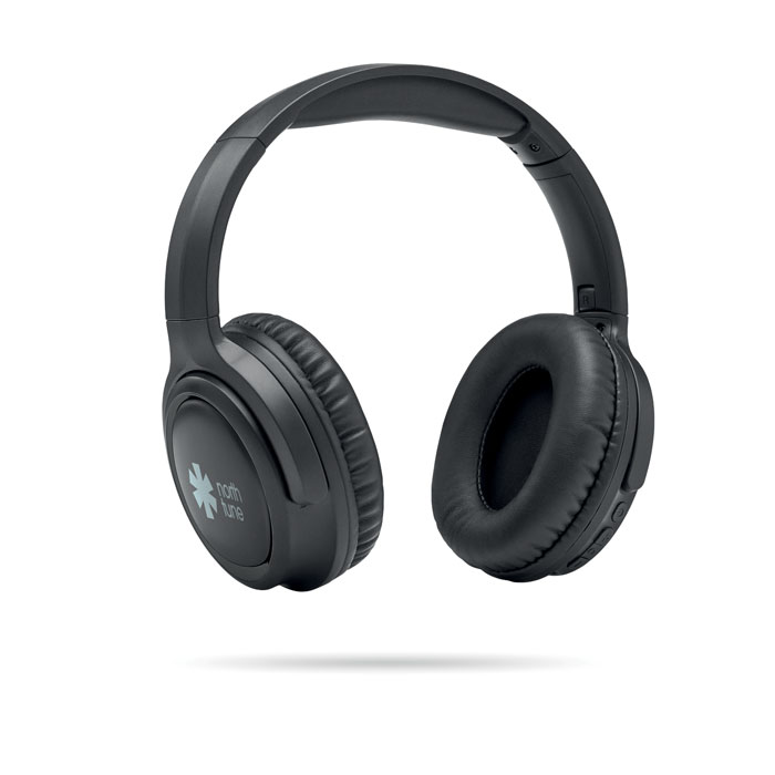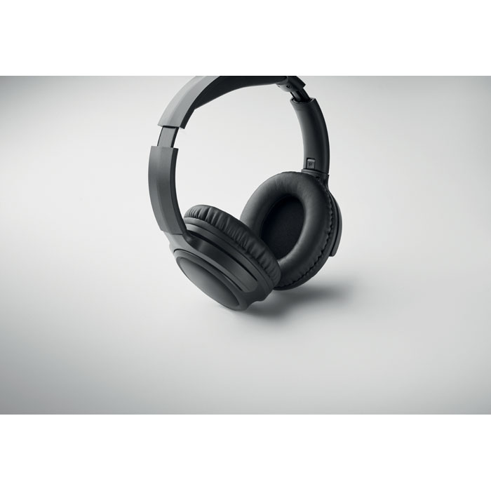 Bezprzewodowe składane słuchawki z aktywną redukcją szumów (ANC) 5.3 z ABS. Funkcja zestawu głośnomówiącego i wbudowany mikrofon. Czas odtwarzania ok. 17 godzin. W zestawie kabel micro USB do ładowania. Akumulator litowo-jonowy 200 mAh. Zasięg działania: 10 m.