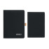 Teczka A5 z RPET z detalami ze sztucznej skóry. Notatnik A5 z twardą, korkową okładką. Oprawiony. 128 stron w linie z papieru z recyklingu (64 arkusze). Uchwyt na długopis. 2 kieszonki na karty i jedna duża przegroda. Elastyczny pasek, z metalowymi detalami.