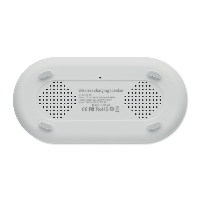 Bezprzewodowa ładowarka 4 w 1, 15 W, głośnik 5 W z ABS, stacja pogodowa i lampka. Budzik. Wyświetlanie czasu i temperatury. Wbudowana bateria litowo-jonowa: 1200 mAh. Czas odtwarzania ok. 7 godzin.