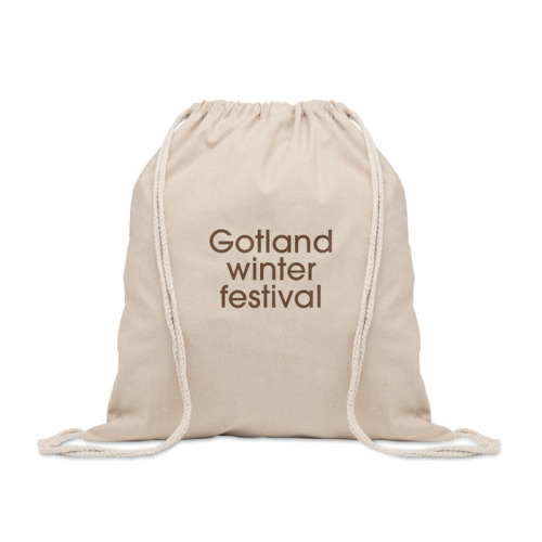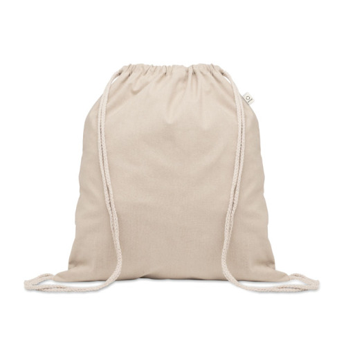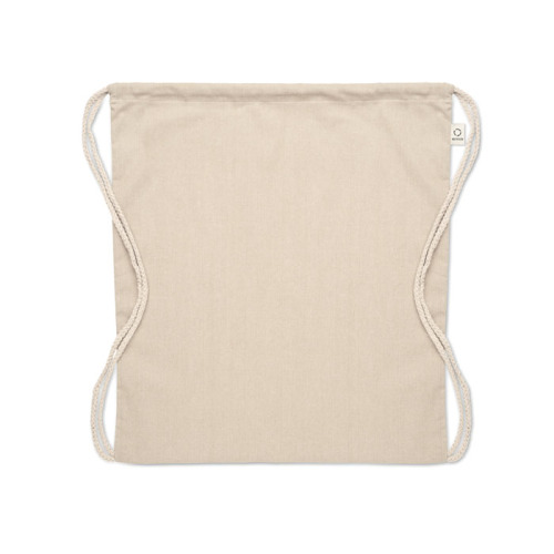 Worek ze sznurkiem wykonany z przetworzonej bawełny (70%) i RPET (30%). 140 gr/m².