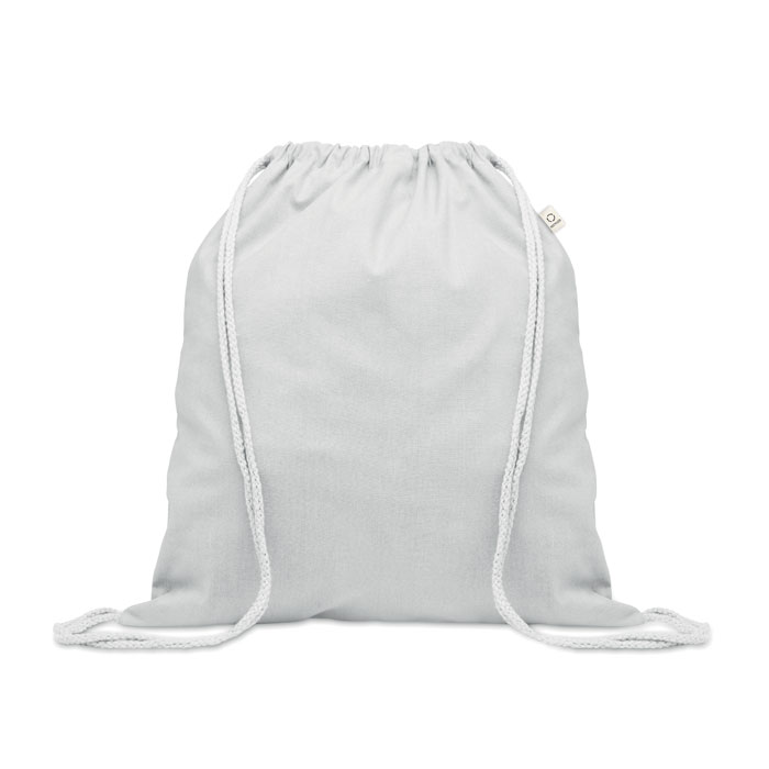 Worek ze sznurkiem wykonany z przetworzonej bawełny (70%) i RPET (30%). 140 gr/m².