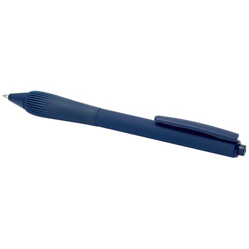 Długopis z tworzyw sztucznych pochodzących z recyklingu, z gumowanym korpusem i uchwytem wykonanym z TPR. Kolor tuszu: Czarny. Żywotność: 1000 metrów. Rozmiar stalówki: 1,0 mm.