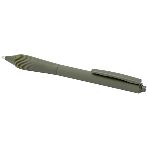 Długopis z tworzyw sztucznych pochodzących z recyklingu, z gumowanym korpusem i uchwytem wykonanym z TPR. Kolor tuszu: Czarny. Żywotność: 1000 metrów. Rozmiar stalówki: 1,0 mm.
