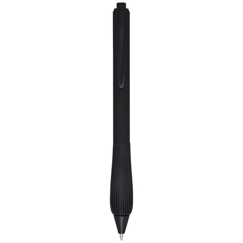 Długopis z tworzyw sztucznych pochodzących z recyklingu, z gumowanym korpusem i uchwytem wykonanym z TPR. Kolor tuszu: Czarny. Żywotność: 1000 metrów. Rozmiar stalówki: 1,0 mm.