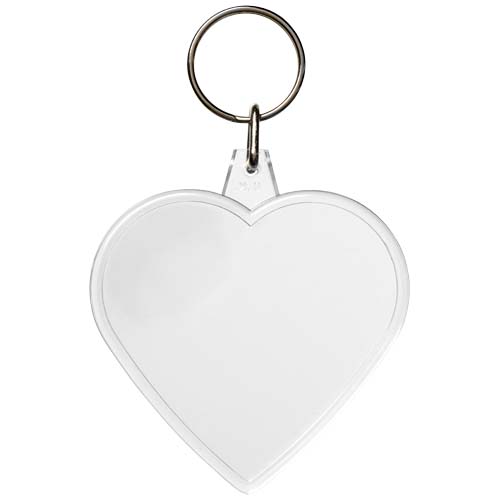 Okrągły breloczek w kształcie serca z metalowym pękiem na klucze. Metalowy pierścień cechuje płaski profil, który idealnie nadaje się do wysyłek. Wymiary wkładu do druku: 5,8 cm x 5,0 cm.