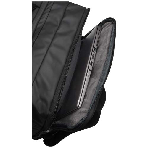 Expedition Pro rozszerzalny i wytrzymały plecak na laptopa z certyfikatem GRS to najlepszy wybór dla profesjonalistów, którzy stale muszą łączyć podróże i pracę. Plecak ma większą pojemność odpowiadającą podręcznemu wózkowi i jest wykonany z wodoodpornego materiału RPET w połączeniu z wysokiej jakości elementami z PU i podszewką z RPET. Posiada dedykowaną komorę na laptopa o przekątnej 17 cali i rękaw na tablet, rozszerzalną komorę w stylu wózka do przechowywania odzieży, zintegrowaną szczelną dużą kieszeń na przybory toaletowe oraz przestronną komorę przednią z wieloma kieszeniami wewnątrz i na zewnątrz. Wyposażony w wyściełane i regulowane paski na ramię, zintegrowaną kieszeń na karty, pętlę na okulary przeciwsłoneczne, wyprofilowany spód z siatki powietrznej, a także wyściełany uchwyt, zapewniający maksymalny komfort i wygodę noszenia. Pojemność: 35 litrów. Wolne od PVC.